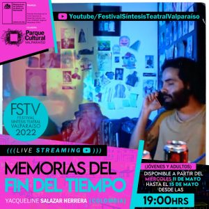 Felices de participar online en el Festival Síntesis Teatral Valparaiso 2022, con nuestro Grupo El Laboratorio Escénico Ateneo en el Festival de Teatro de Valparaiso con el Capítulo 1 de Memorias del fin del tiempo.